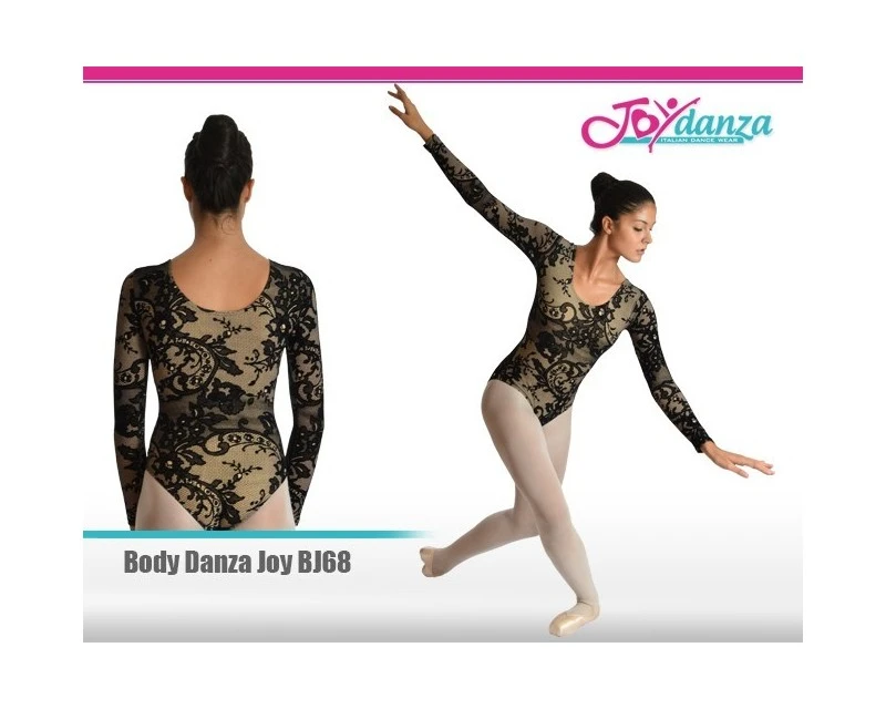 Body interamente realizzato in tessuto broccato bielastico. Scollo tondo anteriore e posteriore con manica lunga fino ai polsi, specificatamente per adulta. Si presta a tantissimi utilizzi, dalla danza moderna oppure abbinato a gonne con piume o marabu, per spettacoli a tema burlesque. Molto apprezzato anche per l’effetto pizzo prezioso che ben si presta ad altri componenti e costumi. In foto è visibile la versione con base nudo e disegni neri, ma è realizzabile anche in altre varianti colori (vedi cartella colori tessuto broccato). Come tutti i nostri body è foderato anteriormente con stoffa antiallergica.
