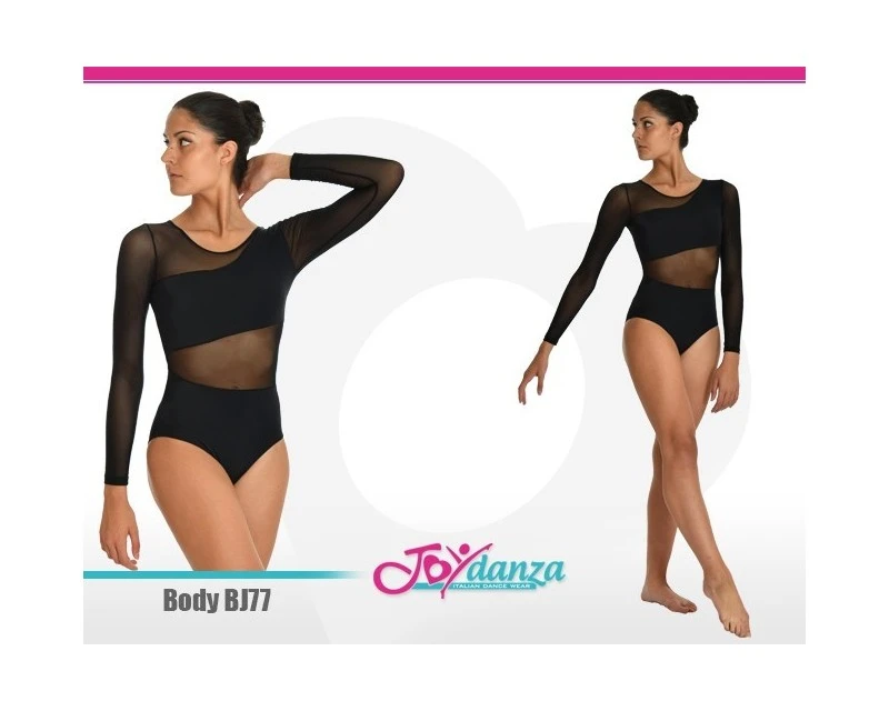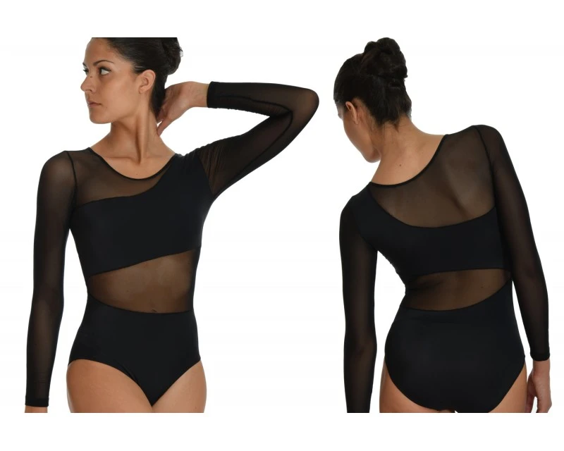 Elegante e versatile questo body danza in rete con manica lunga elasticizzata adatto a varie discipline. Disegno asimmetrico ed accattivante, creato da inserti in lycra tono su tono.