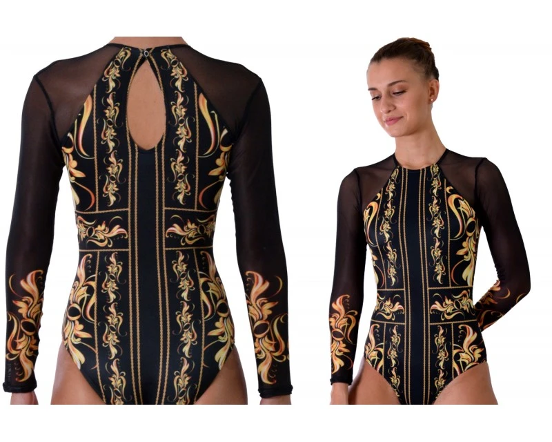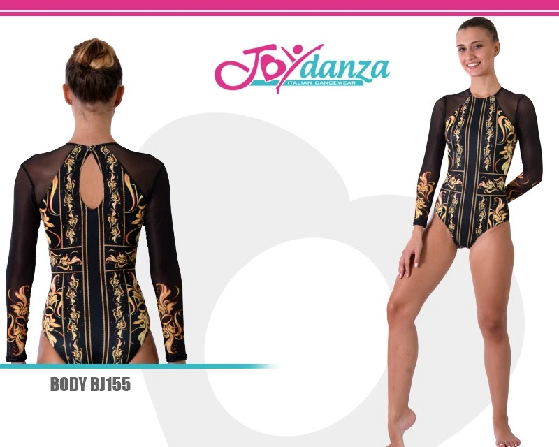 Body disegnato a manica lunga simile al BJ154 ma con inserti in rete su spalle e maniche. Si presta alle più disparate discipline oltre la danza classica e contemporanea, come pattinaggio e ginnastica. Stampando sulla stoffa, previo contatto con il nostro staff, si potrà personalizzarlo in infiniti modi diversi. Collo alto e allacciatura a goccia per indossarlo comodamente.