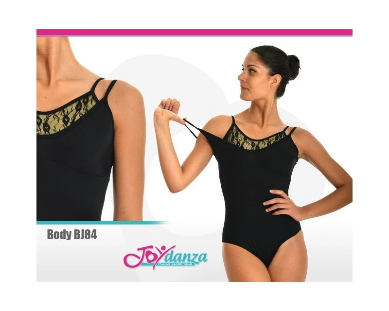 Body danza per ballerina scollato due volte, una in lycra, l’altra pizzo elastico. Sensuale ed utile per vestire a spalline sottili anche le taglie più grandi. Il pizzo anteriore è foderato color nudo.