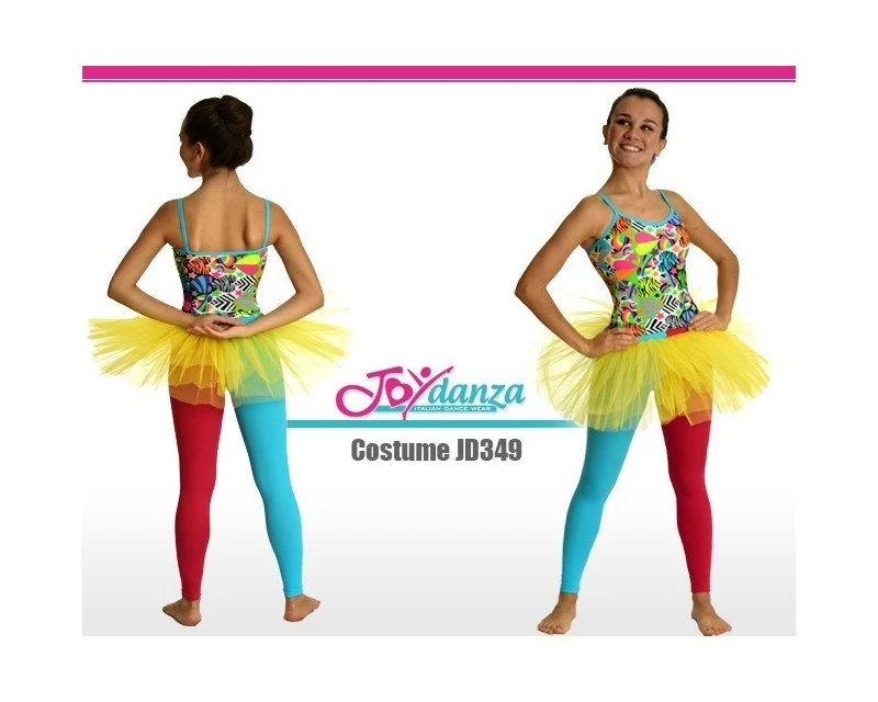 Originale costume per la danza moderna, il carattere sbarazzino e fantasioso lo rende adatto a tutti i ruoli goliardici, come clown, giullari o caramelle.