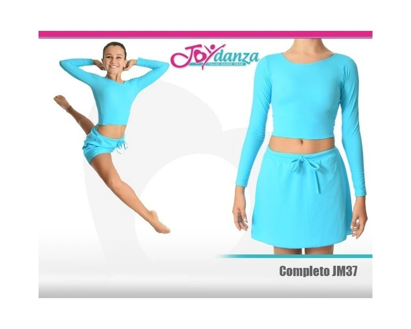Completo per la danza moderna composto da una t-shirt a manica lunga che termina sotto la vita e gonna con laccetto.