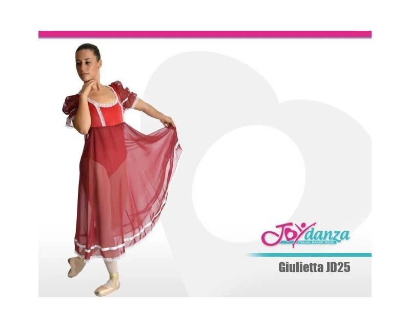 Costume danza per interpretare Romeo e Giulietta. L’abito in stile impero orlato di merletti può essere richiesto in colori diversi da quelli in foto