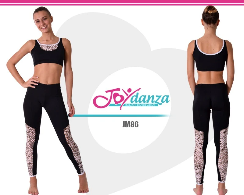 Un completo danza composto da top con inserto allo scollo, pantacollant con inserti da mezza gamba alle caviglie in rete elastica a maglie molto larghe. La rete è prodotta solo in questa variante colore, pertanto si consiglia di selezionare colori della tinta unita, in foto nera, abbinabili al tessuto a maglie larghe. Il capo finale è una tuta poliedrica, per danza, fitness ed altre discipline moderne.