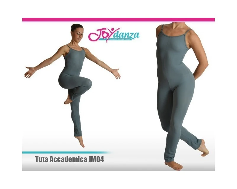 Tuta accademica a bretelline, aderente nella parte superiore e con finale della gamba semiaderente in stile pantajazz.