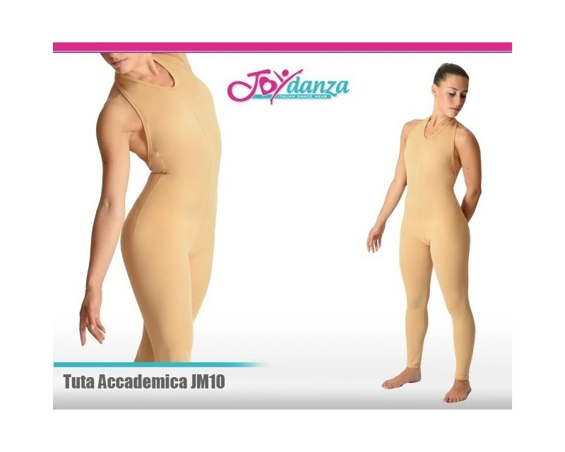 Tuta accademica color carne, Da sempre la tuta accademica color nudo o carne come dir si voglia, è un articolo largamente utilizzato sia per spettacoli che nei corsi. Joy offre il meglio anche per questa tipologia di tuta. Disegnata con allacciatura passante alla nuca, lunga fino alla caviglia con scollo dorsale molto profondo che mette in mostra tutta la schiena della ballerina. Il tessuto utilizzato per questa tuta è rigorosamente della migliore lycra presente sul mercato e viene foderata anteriormente con fodera antiallergica.