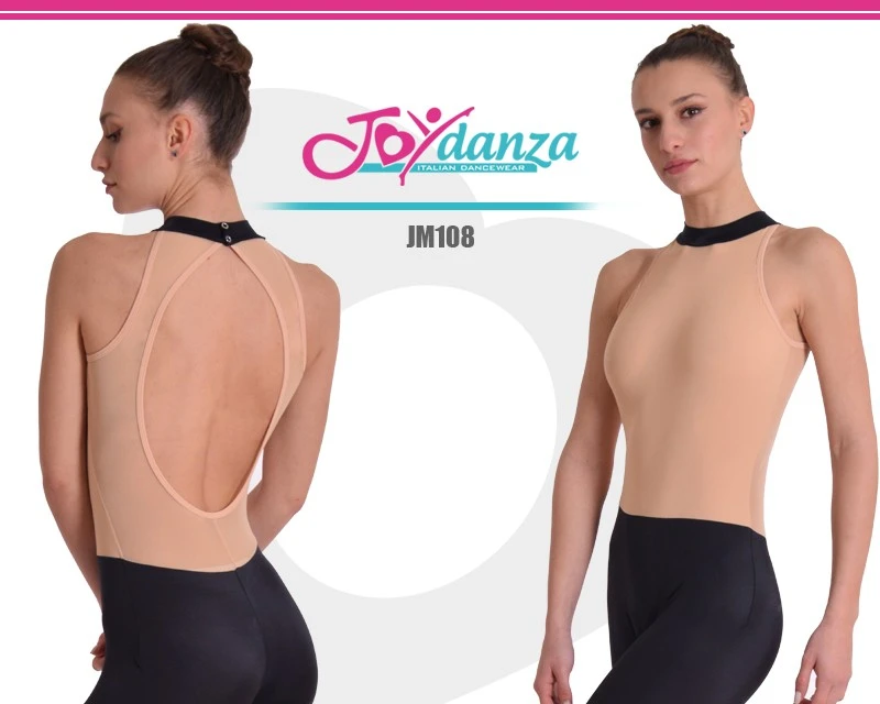Tuta accademica danza bicolore con scollo profondo posteriore e fascia al collo a richiamare la parte basse della tuta. Nella combinazione colori in foto si crea l’effetto di un busto nudo ed un leggings.