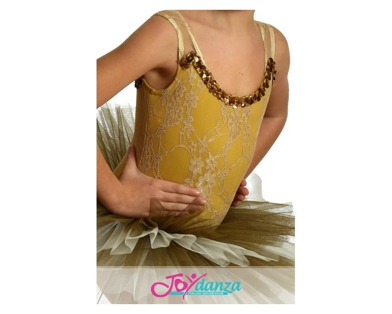 Tutù danza per rappresentazioni pregevoli ed eleganti che replicano i balletti di repertorio come ad esempio il Don Chisciotte. I 6 strati di tulle rigido alternato creano un effetto cromatico caratteristico ed il body presenta una trama che evoca i ricami di un tempo. Tutti dettagli che collocano perfettamente le bambine e le adulte nei contesti tipici di molti balletti di repertorio.