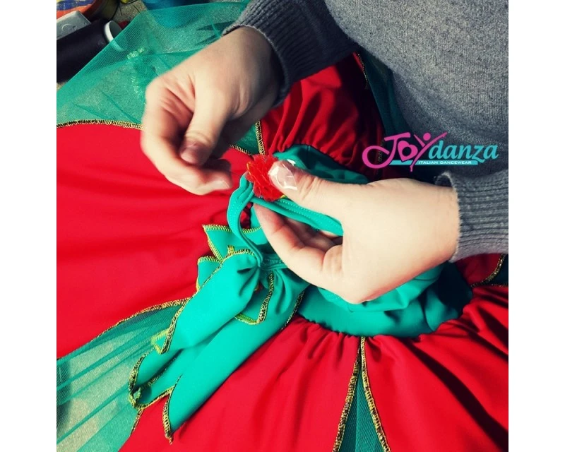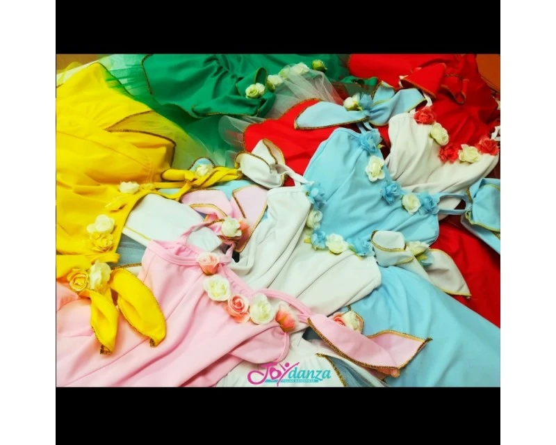 Tutù fiorellino per bambina corolla a 5 strati di tulle rigido con petali di raso orlati