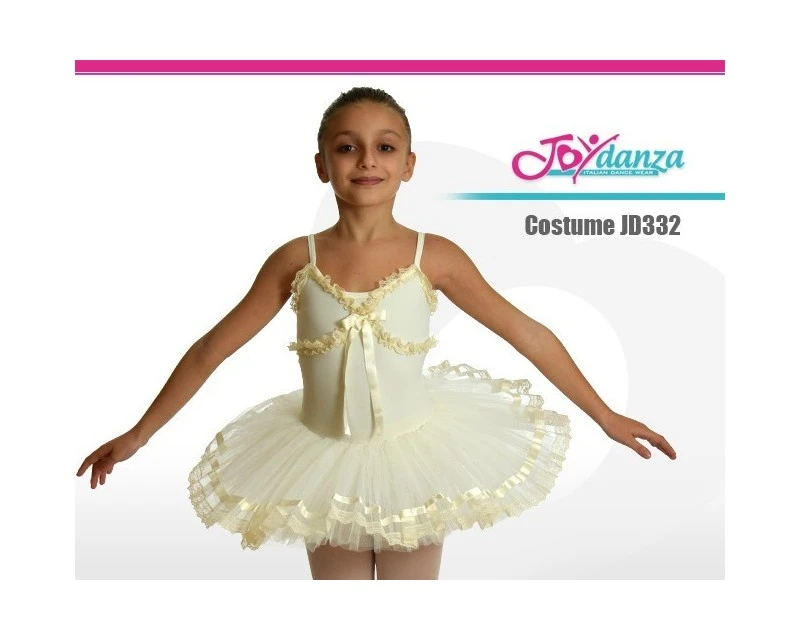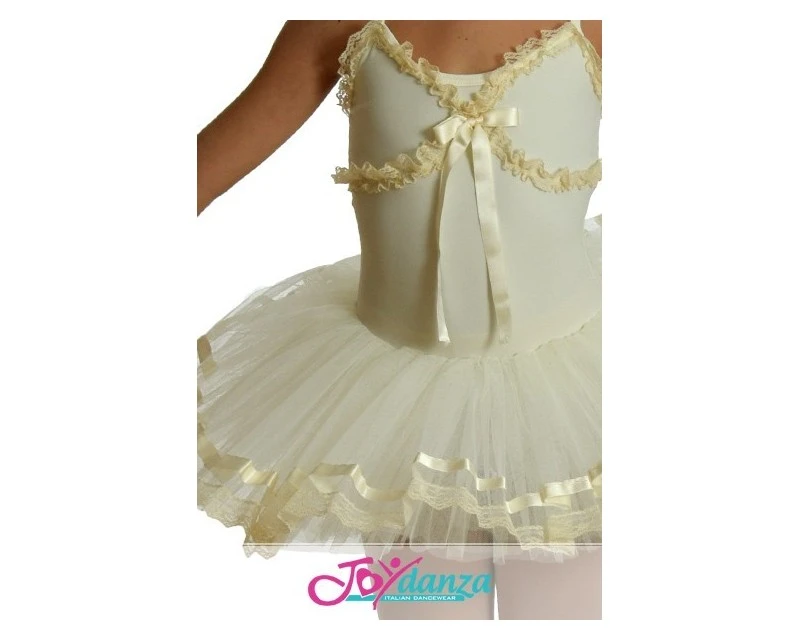 Vestito danza classica per bambina confezionato con body e gonna in tulle rigido. La delicatezza del disegno, dei particolari come i merletti e le rifiniture e nello specifico colore avorio, sembrano richiamare una bomboniera. Fine, delicato, trasmette leggerezza. Realizzabile anche in taglia adulta. La gonna è confezionata con 4 strati di tulle rigido.