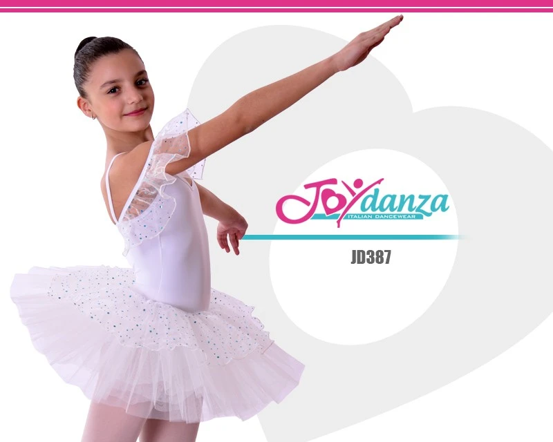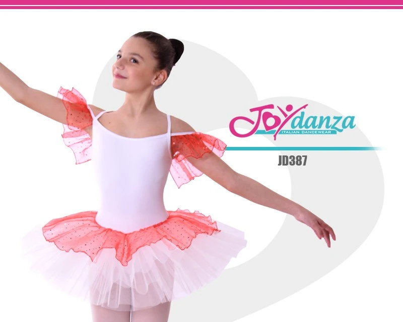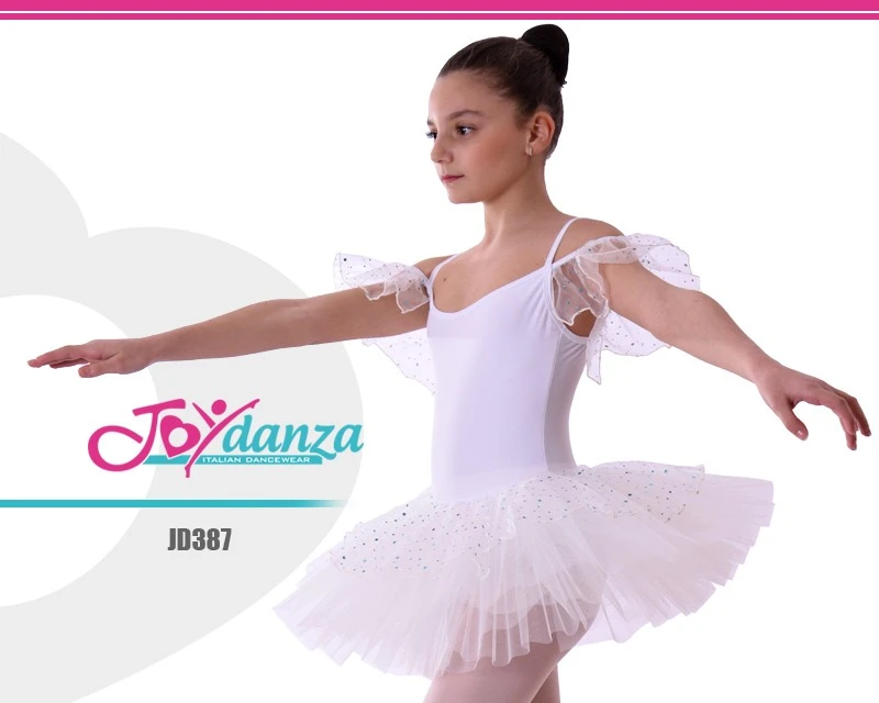 Per questo modello siamo partiti da un modello basic al fine di contenere il costo nonostante l’eccellente resa estetica. Body a bretellina sottile, gonna in tulle rigido a 6 strati a scalare. Il tutù è impreziosito da un copritulle disponibile in 3 colori, utilizzato per coprire parte della gonna ed impreziosendo le spalline con delle alette dello stesso colore e tessuto.
