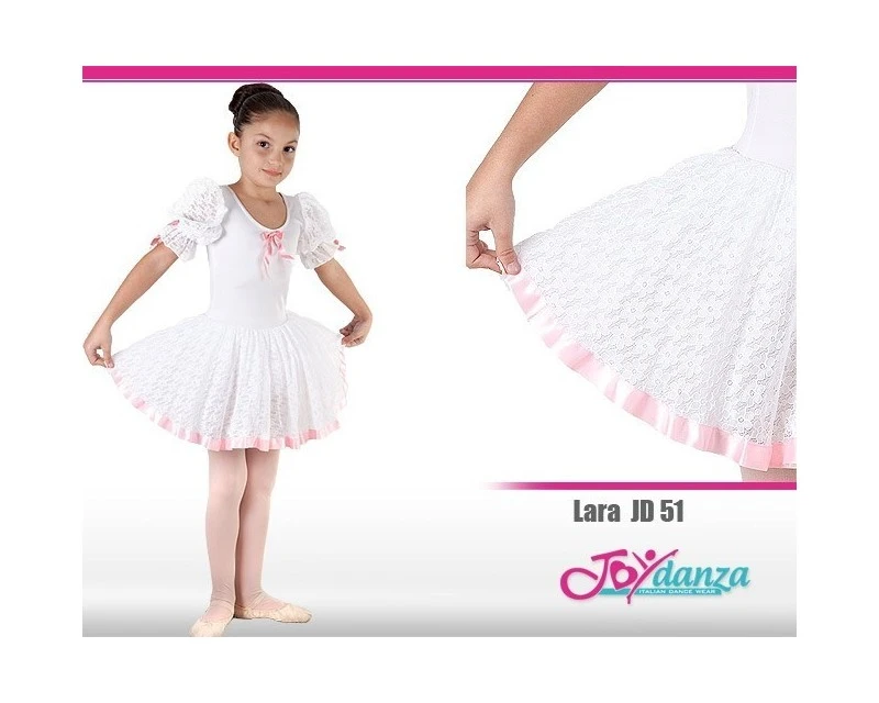 Tutu per bambina con gonna e maniche completamente in merletto con nastri agli orli.