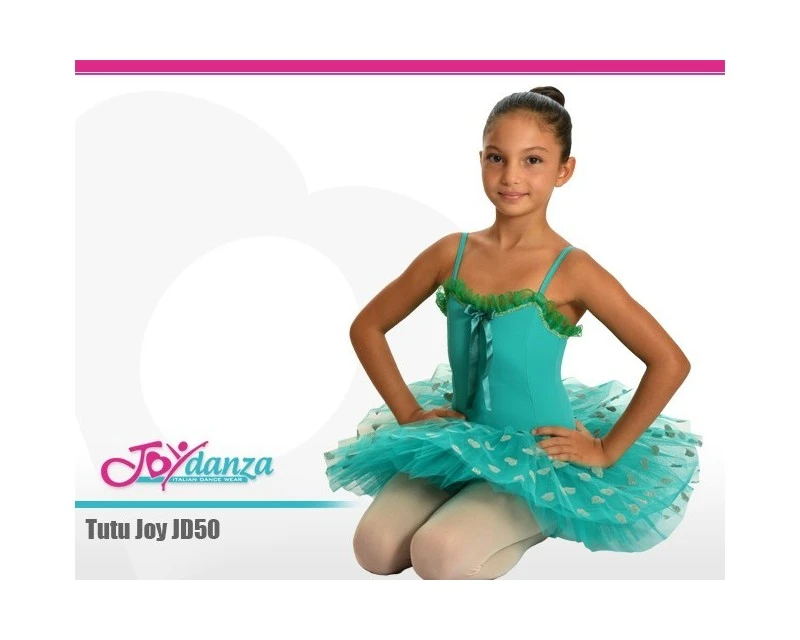 Tutù per bambina con tulle operato a cuoricini che richiamano il logo Joy. I colori, come la fantasia delle tulle possono essere personalizzati